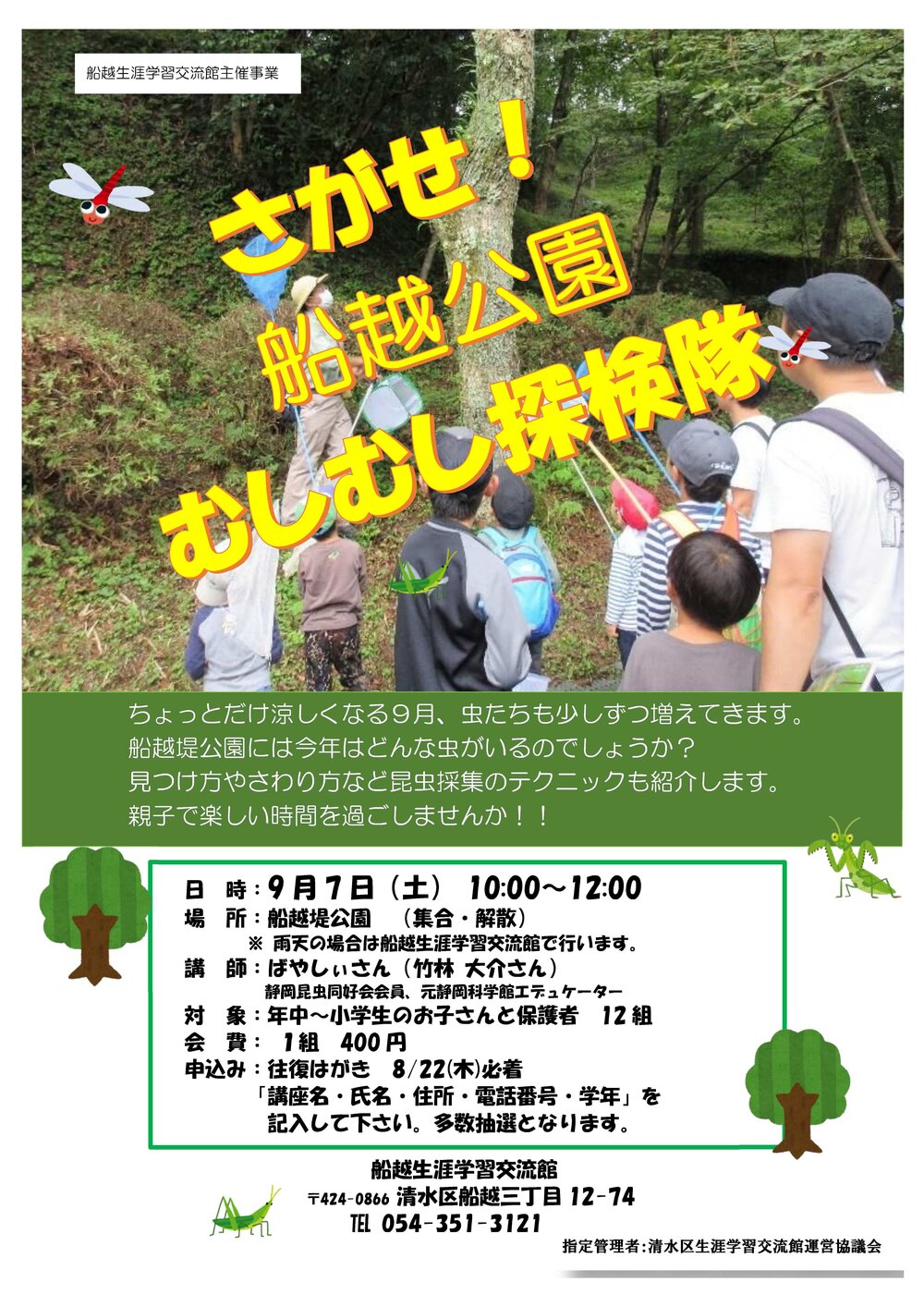 見つけ方やさわり方など昆虫採集のテクニックも紹介します。親子で楽しい時間を過ごしませんか?