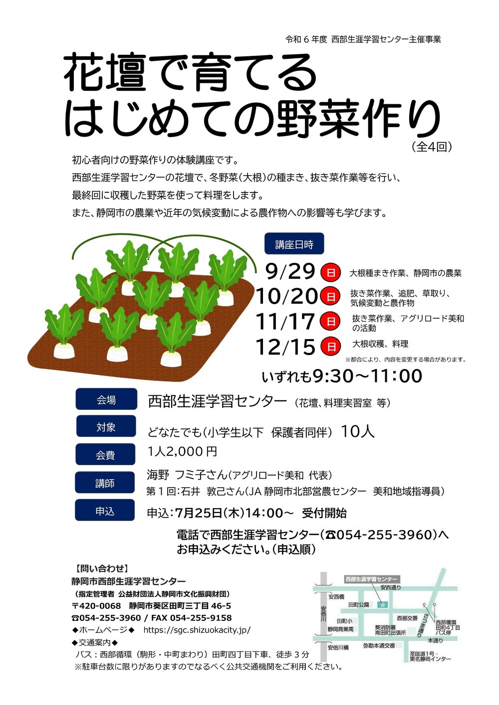 子どもとその保護者の方を対象とした、初心者向けの野菜作りの体験講座です。