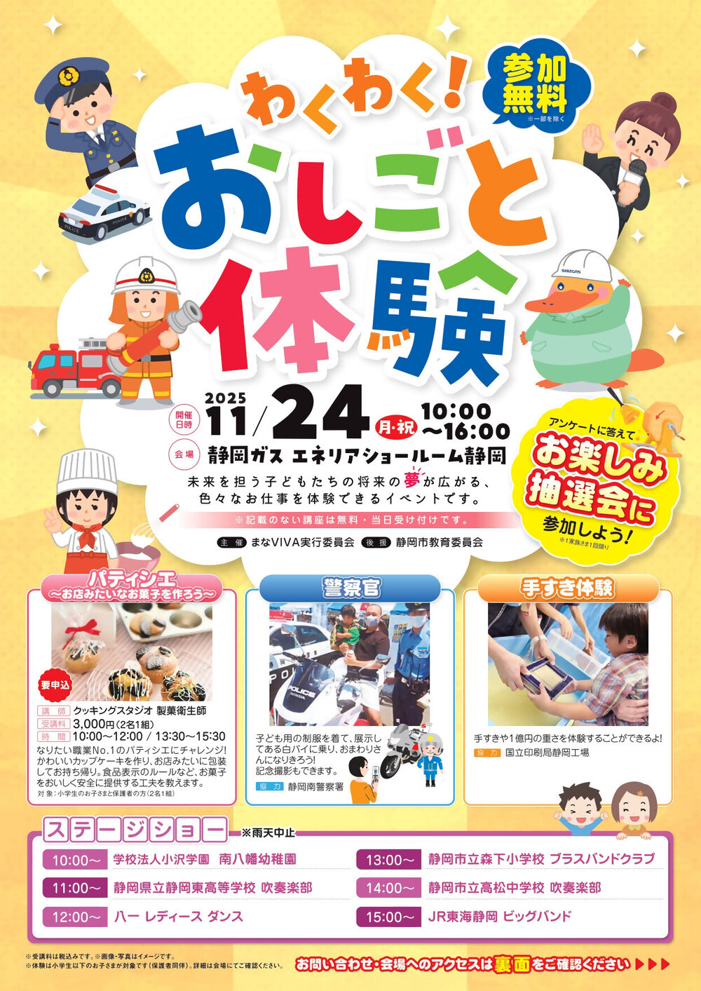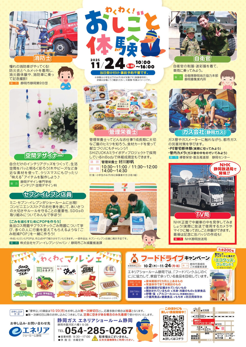 エネリアショールーム静岡では11月24日(月・祝)に「わくわく!おしごと体験」を開催します。