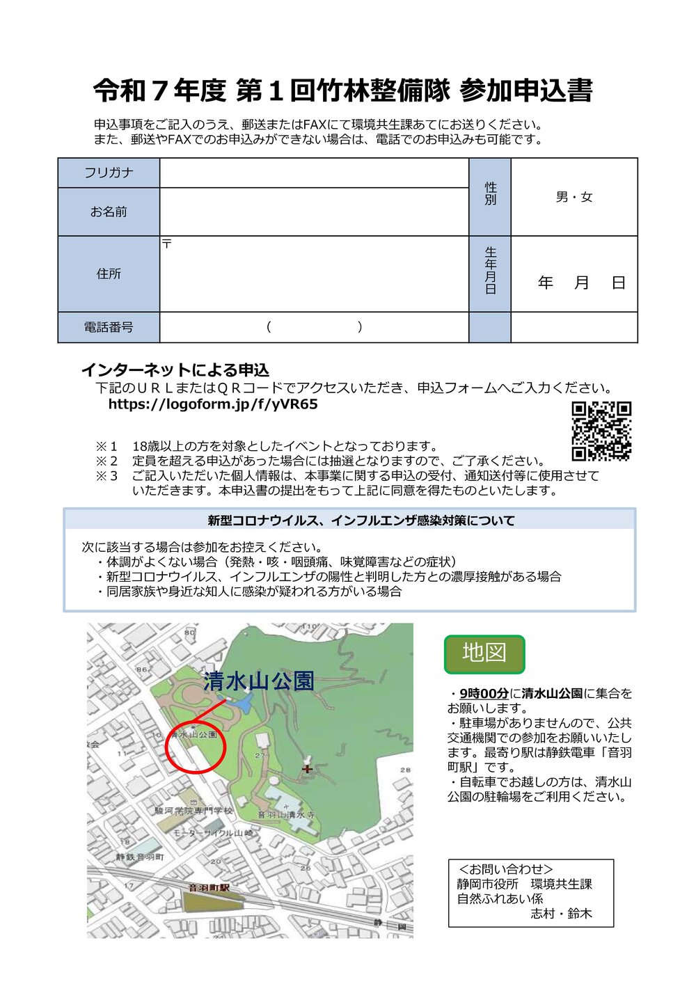 〒420-8602 静岡市葵区追手町5番1号 静岡市環境共生課 自然ふれあい係