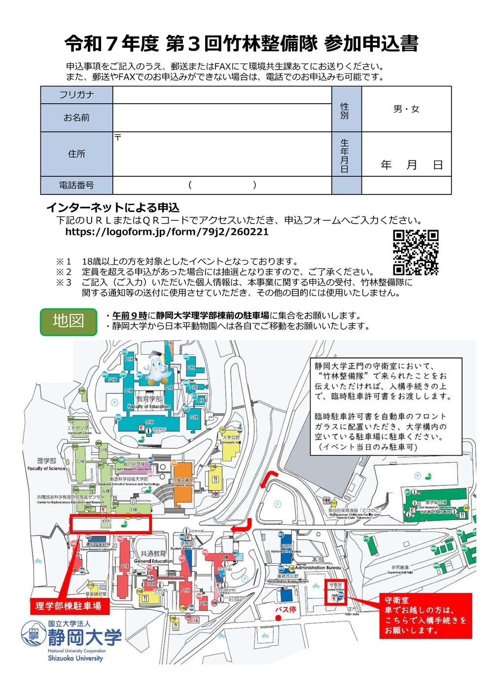 (9時00分 静岡大学理学部棟前駐車場 集合)- 対象者・定員