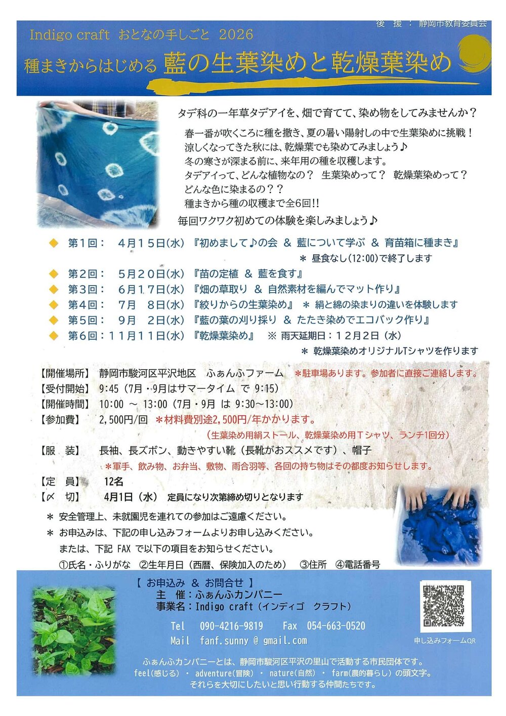 (生葉染め用絹ストール、乾燥葉染め用Tシャツ、ランチ1回分) - 申込方法