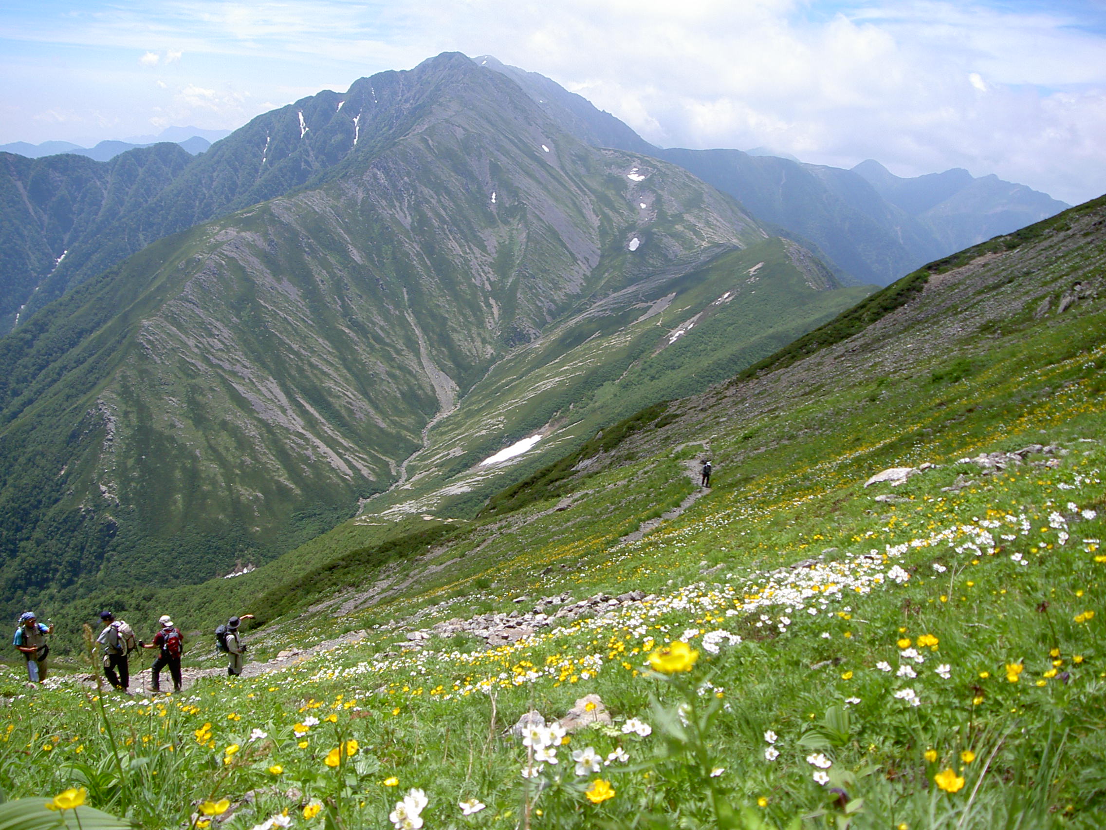 웅장하고 박력이 넘치는 산 풍경, 거대한 산을 가득 메우는 신비로운 원시림, 깊게 패인 가파르고 험한 계곡, 그리고 삼림한계를 넘으면 사면에 피는 고산식물. 이 웅대한 스케일의 원생적 자연이 남아 있는 것이 미나미 알프스의 큰 매력입니다. 길게 보고 접근해야 하는 결코 쉬운 코스는 아니지만, 일본에서도 굴지의 등산 명소입니다.