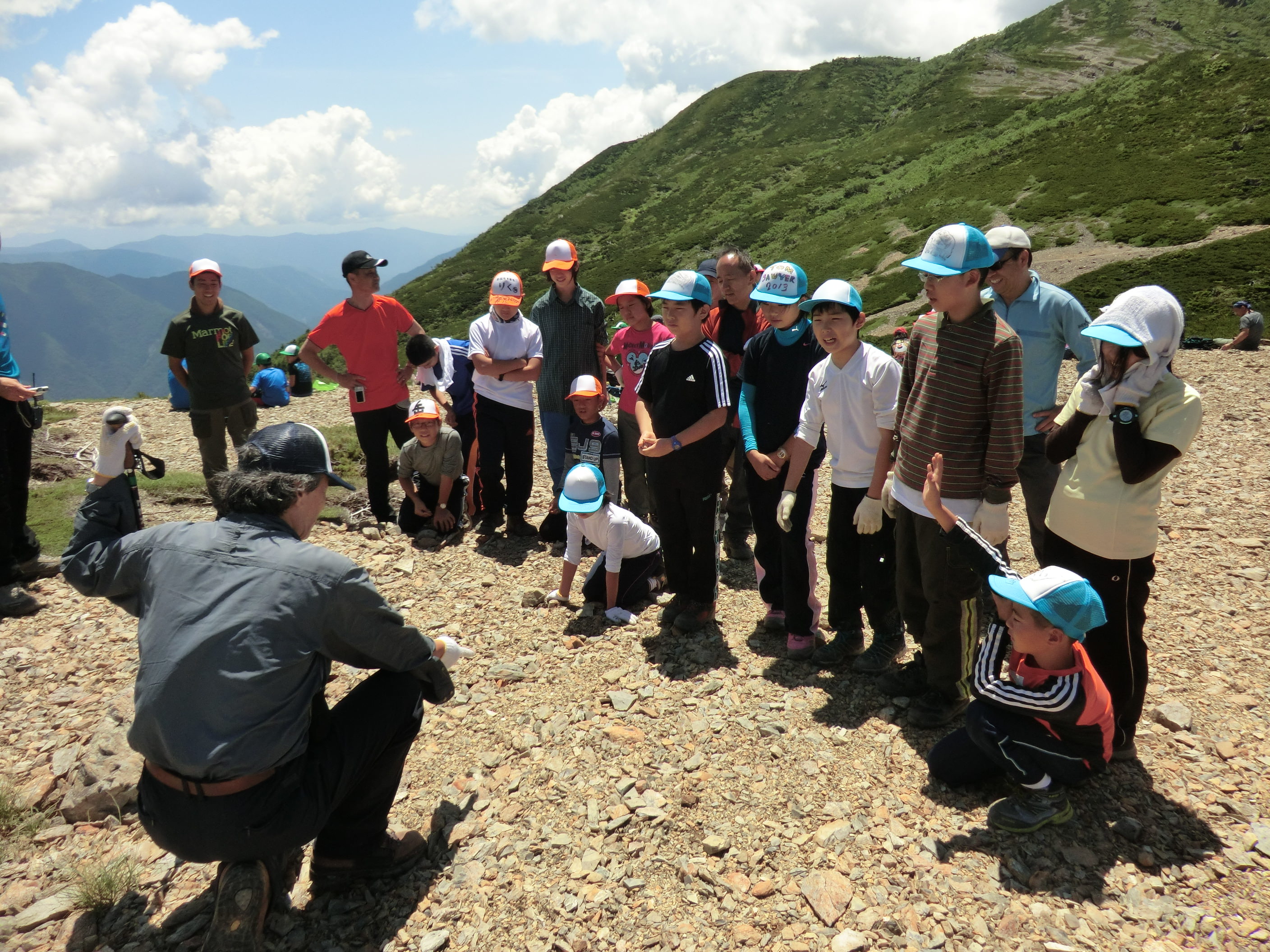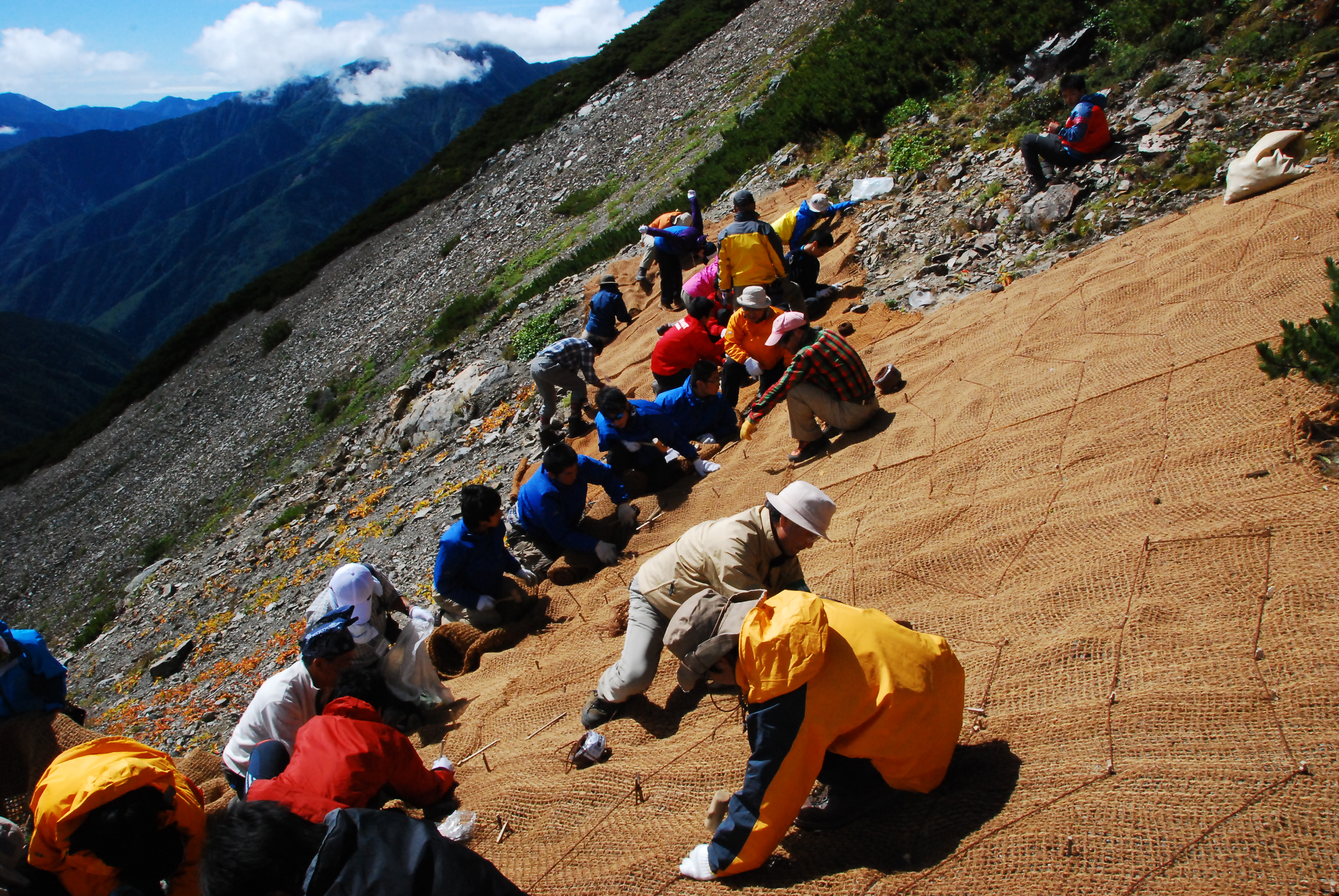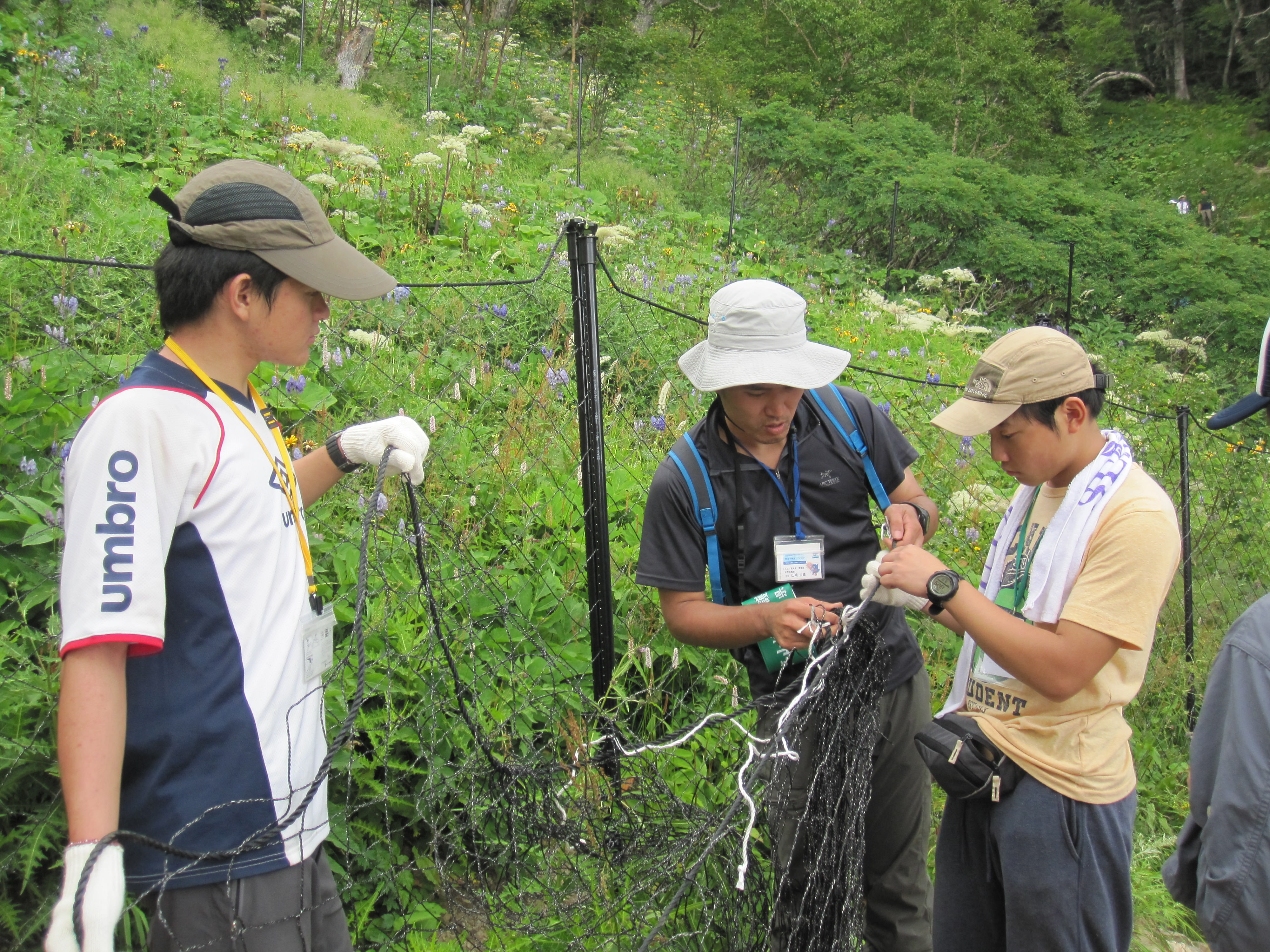 희귀한 고산식물을 일본사슴이 전부 먹어버리지 않도록 망으로 둘러싸서 보호하는 활동, 고산식물 전부가 먹이가 되어서 없어진 산을 복원하기 위한 대책이 자원봉사 참여를 통해 이루어지고 있습니다. 이 활동은 환경교육의 일환으로서 고등학생들이 현장 활동에 참가하고 있습니다.