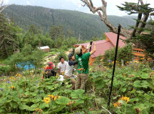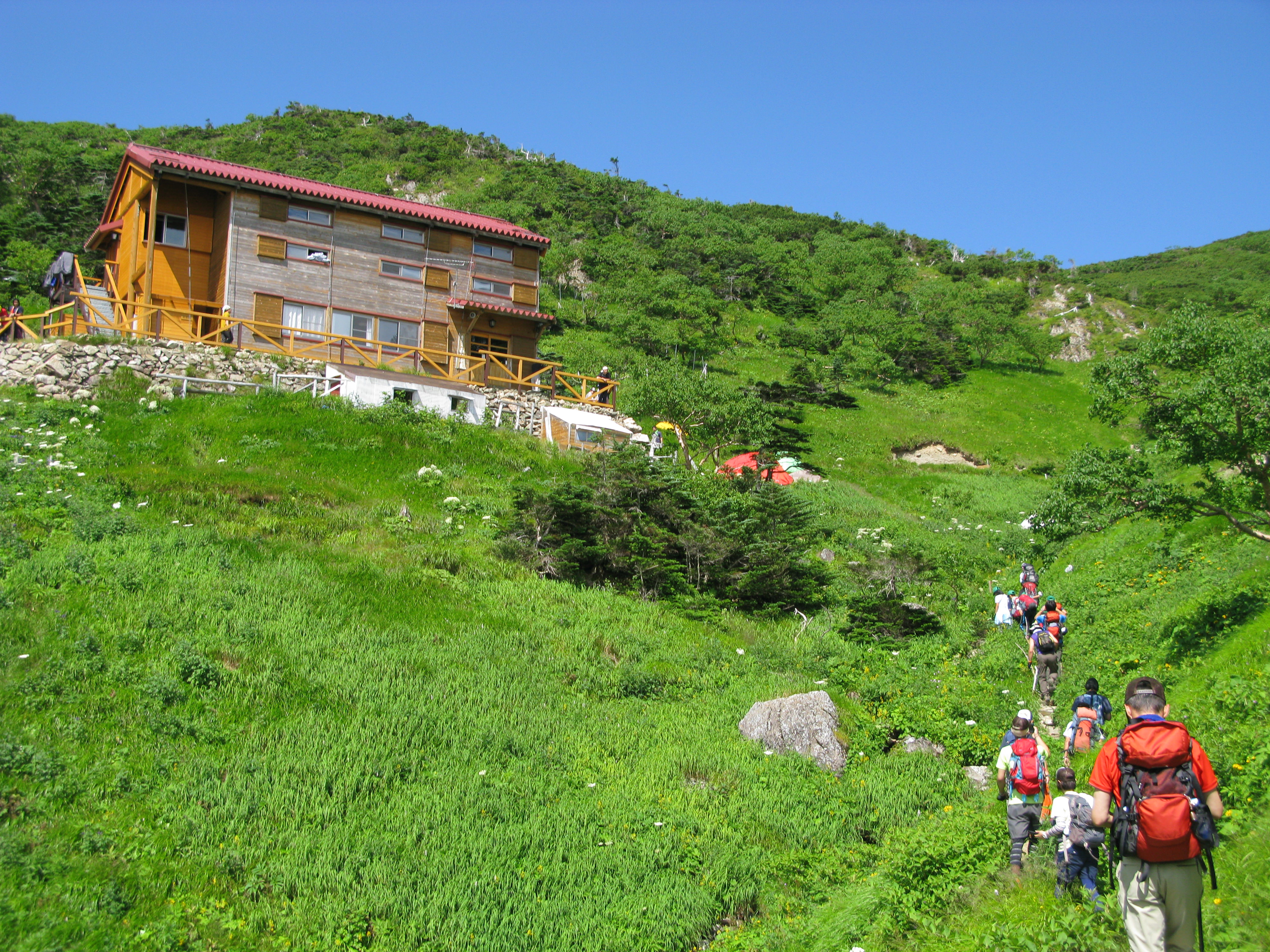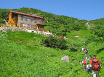 여름에는 영업 중인 산장에서 등산객들이 피로를 달랩니다.