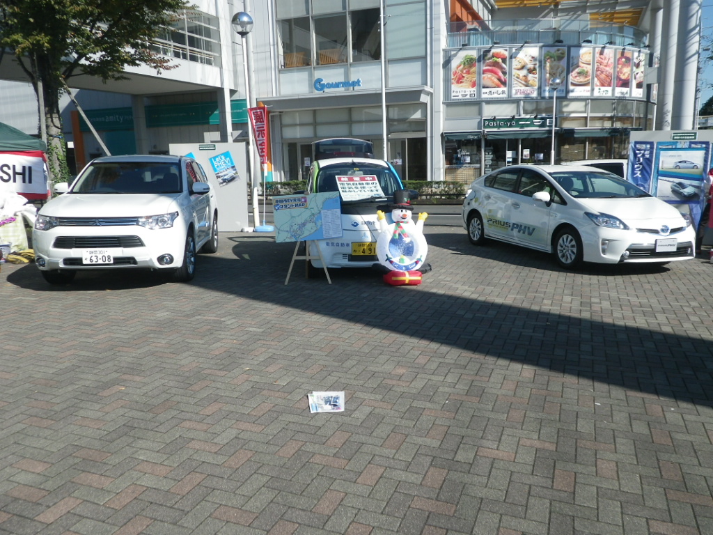 の3社にご協力いただき、最新のEV、PHEV、PHV、家庭用充電器の展示を行いました。