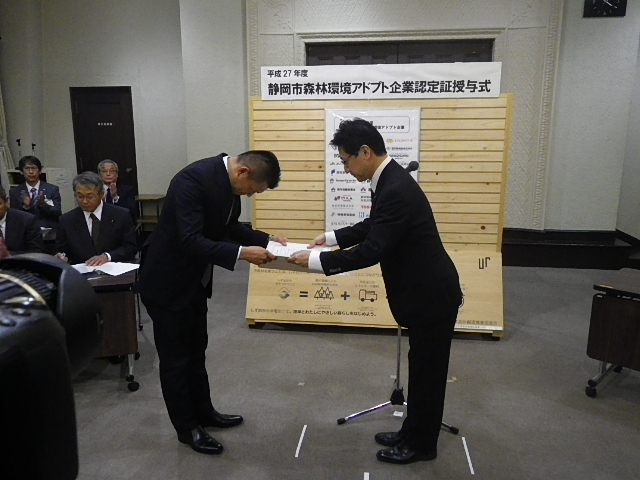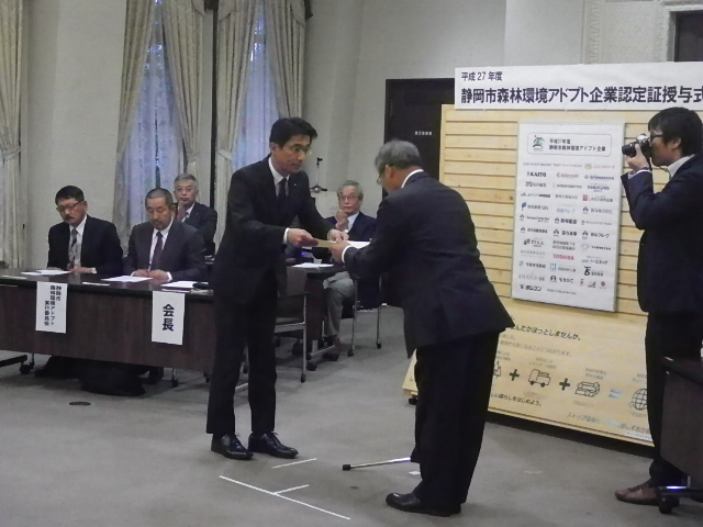 平成27年度静岡市森林環境アドプト企業 認定証授与式を開催しました!