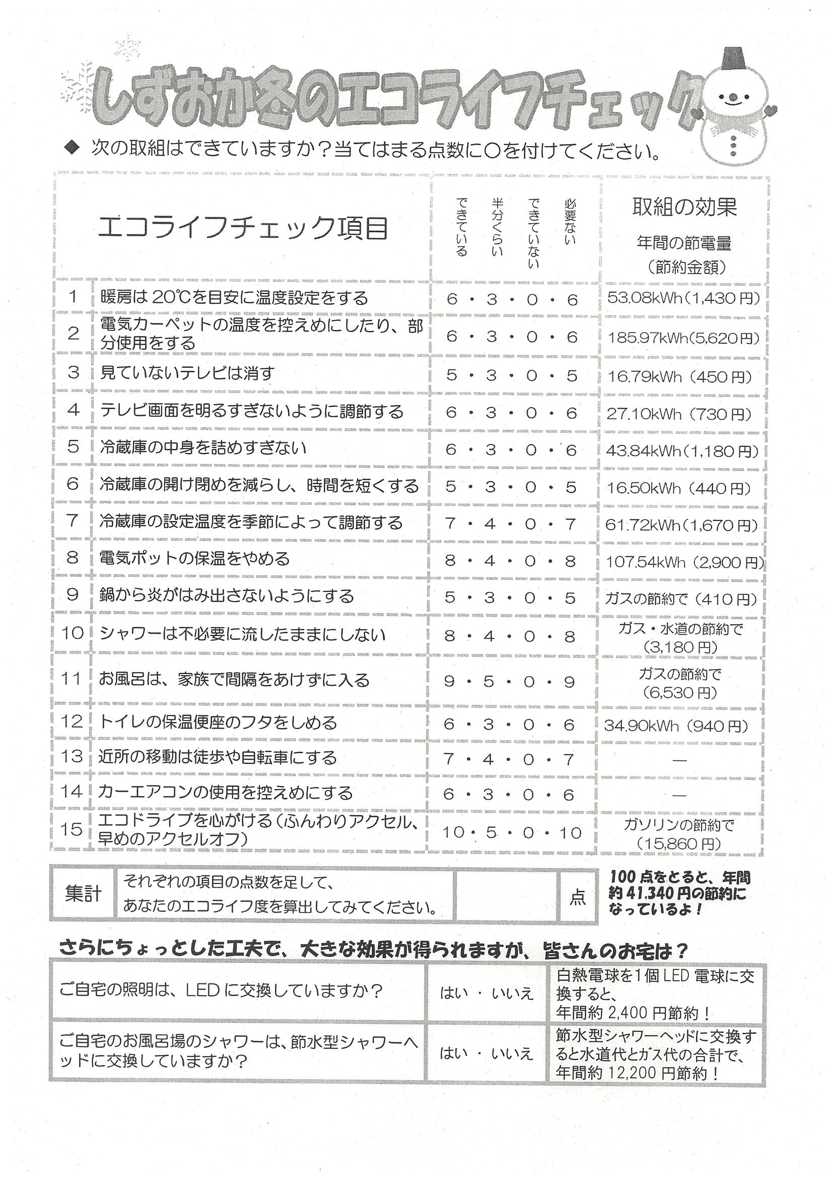※「しずおか冬のエコライフチェック」に挑戦したい方、内容を確認したい方はしずおか冬のエコライフチェック.pdfをクリック!