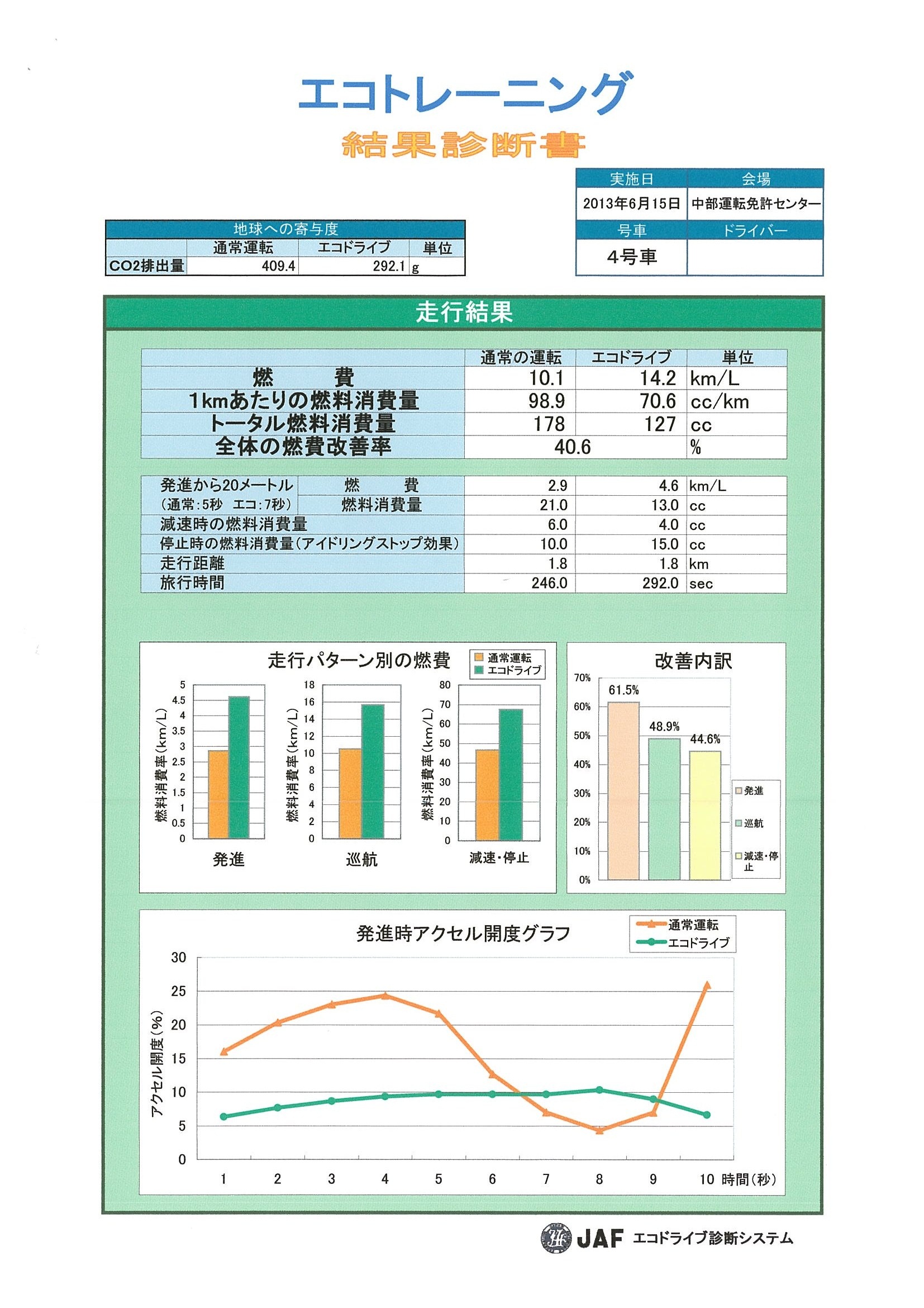 こちらの受講者の診断書は・・・エコトレーニング受講後は燃費が10.1km/Lから14.2km/Lとなっています!
