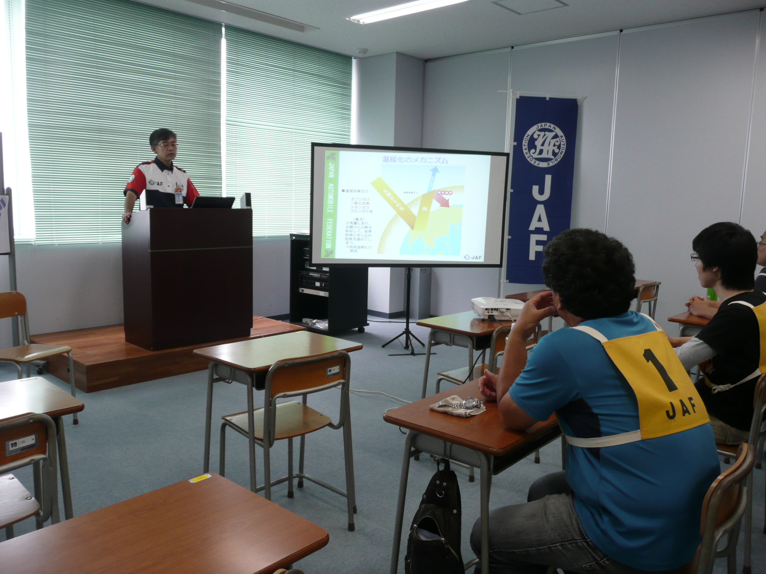 JAF静岡支部のトレーナーからは、アクセルを踏み込みすぎず一定に保つこと、停止位置を予測して早めにアクセルをOFFすること、自分だけが省エネ運転をするのではなく、交通ルールを守りながらできる範囲で取り組むこと等々、「エコドライブ」のポイントについて説明がありました。