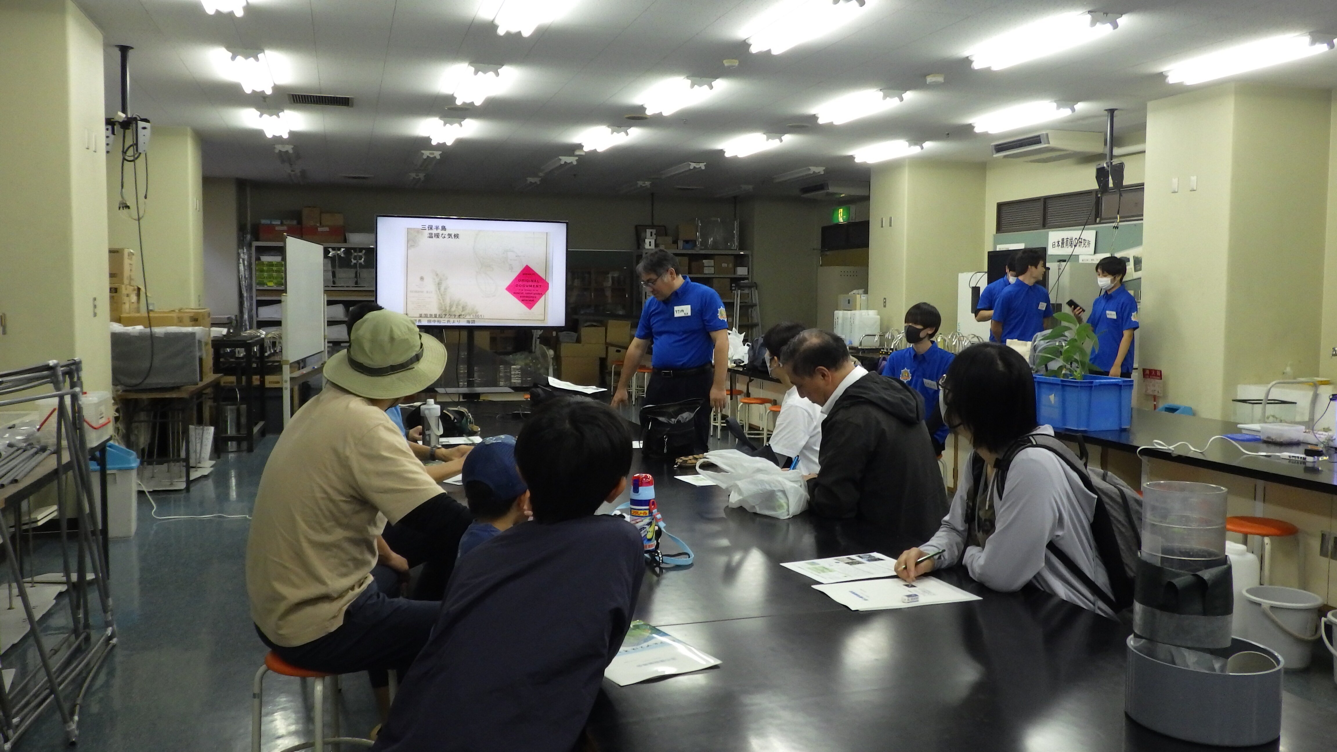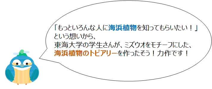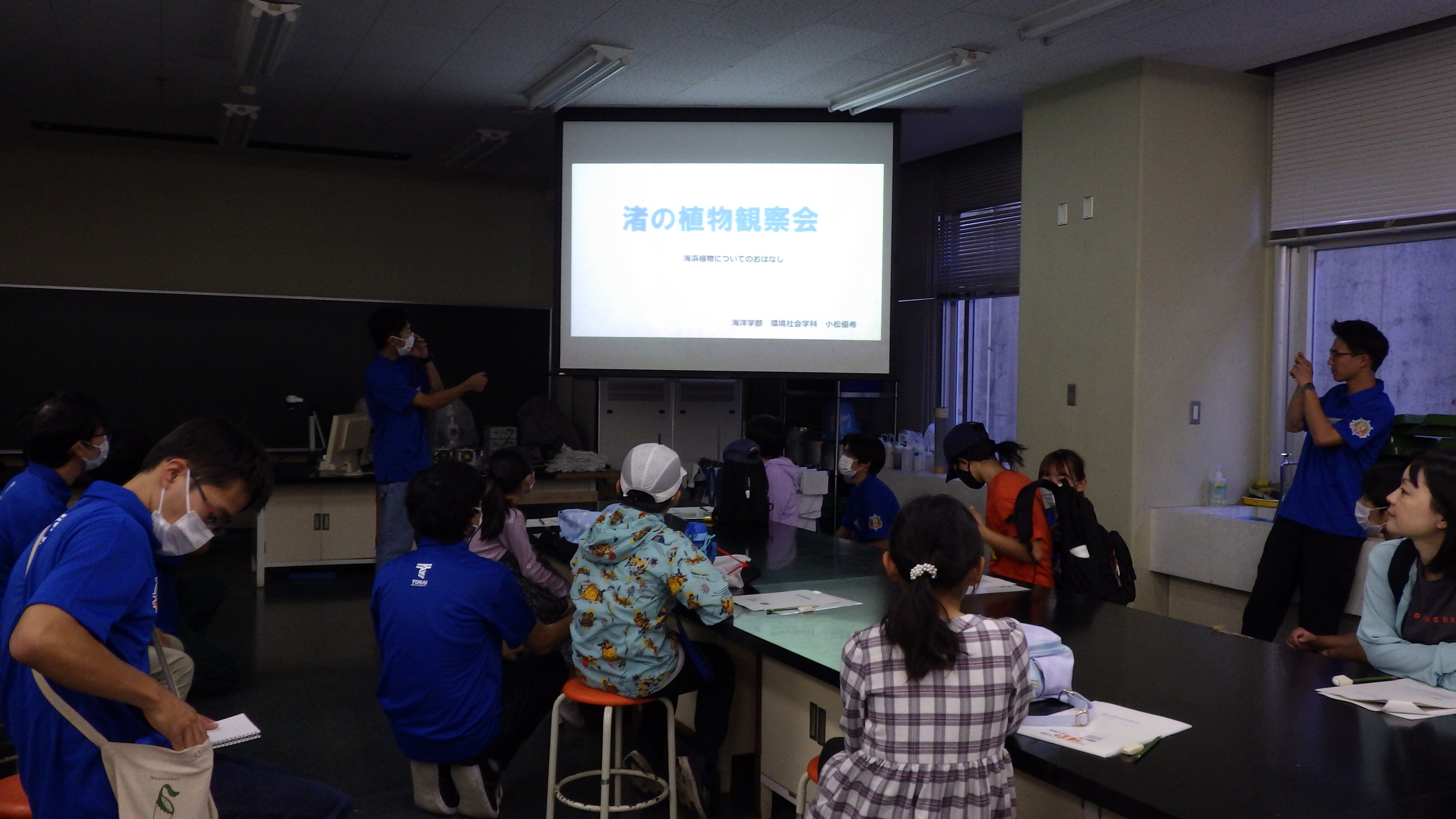 まず、海浜植物について、東海大学海洋学部の学生さんはお子さん向けに、竹内先生は保護者向けに、それぞれお話いただきました。
