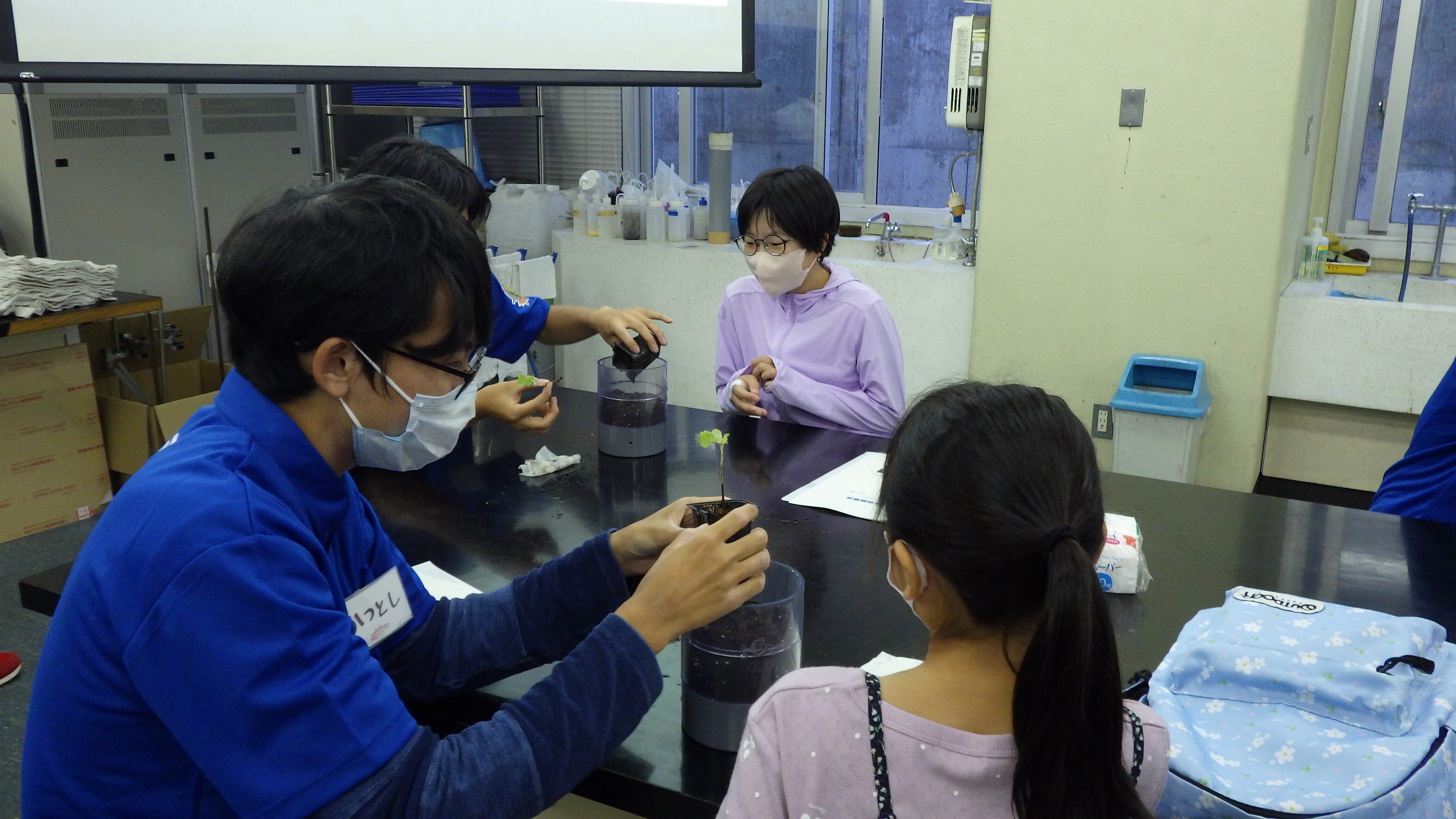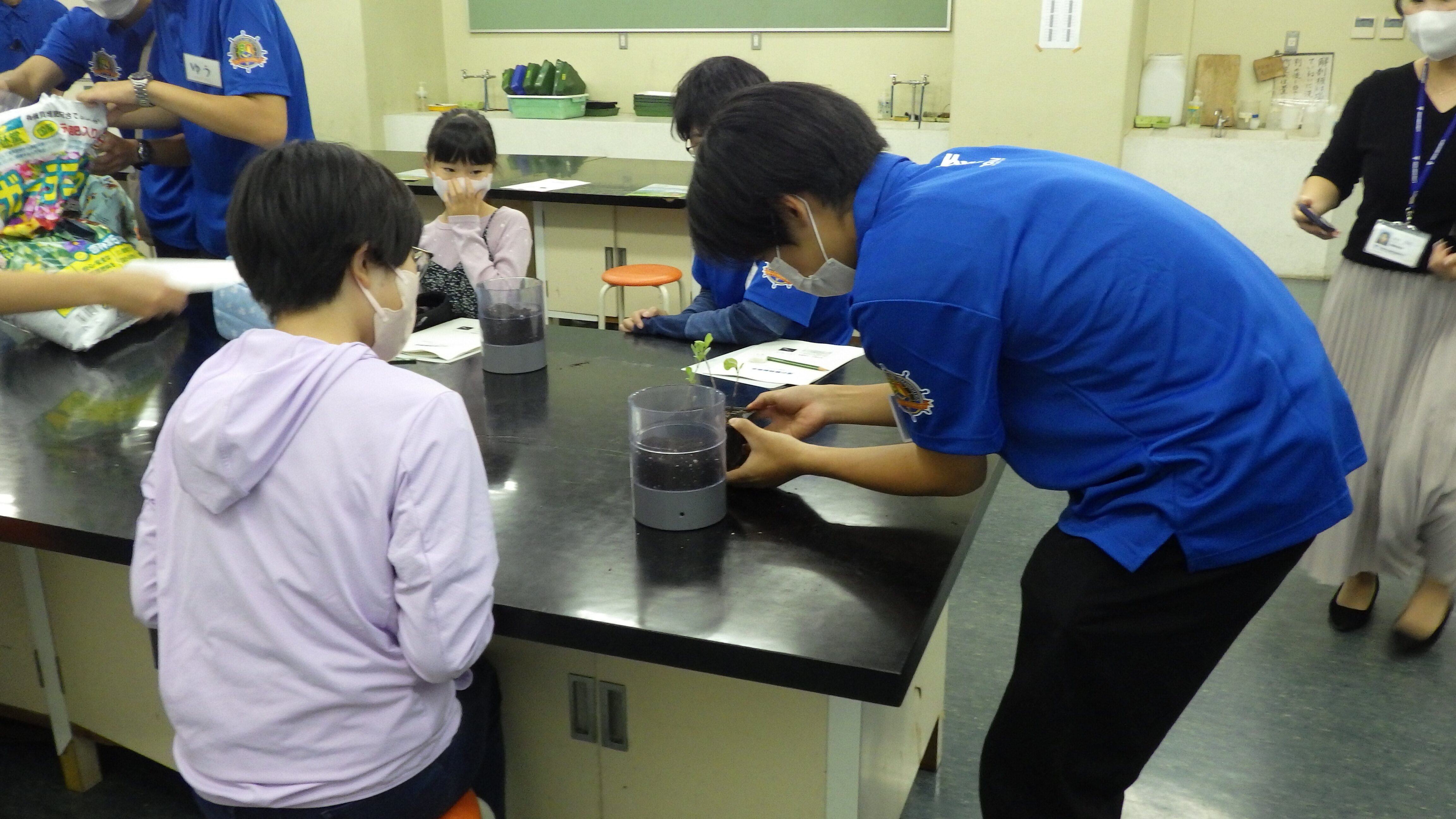 学生さんが観察会のために育ててくれたハマゴウの植え替え体験もしました。