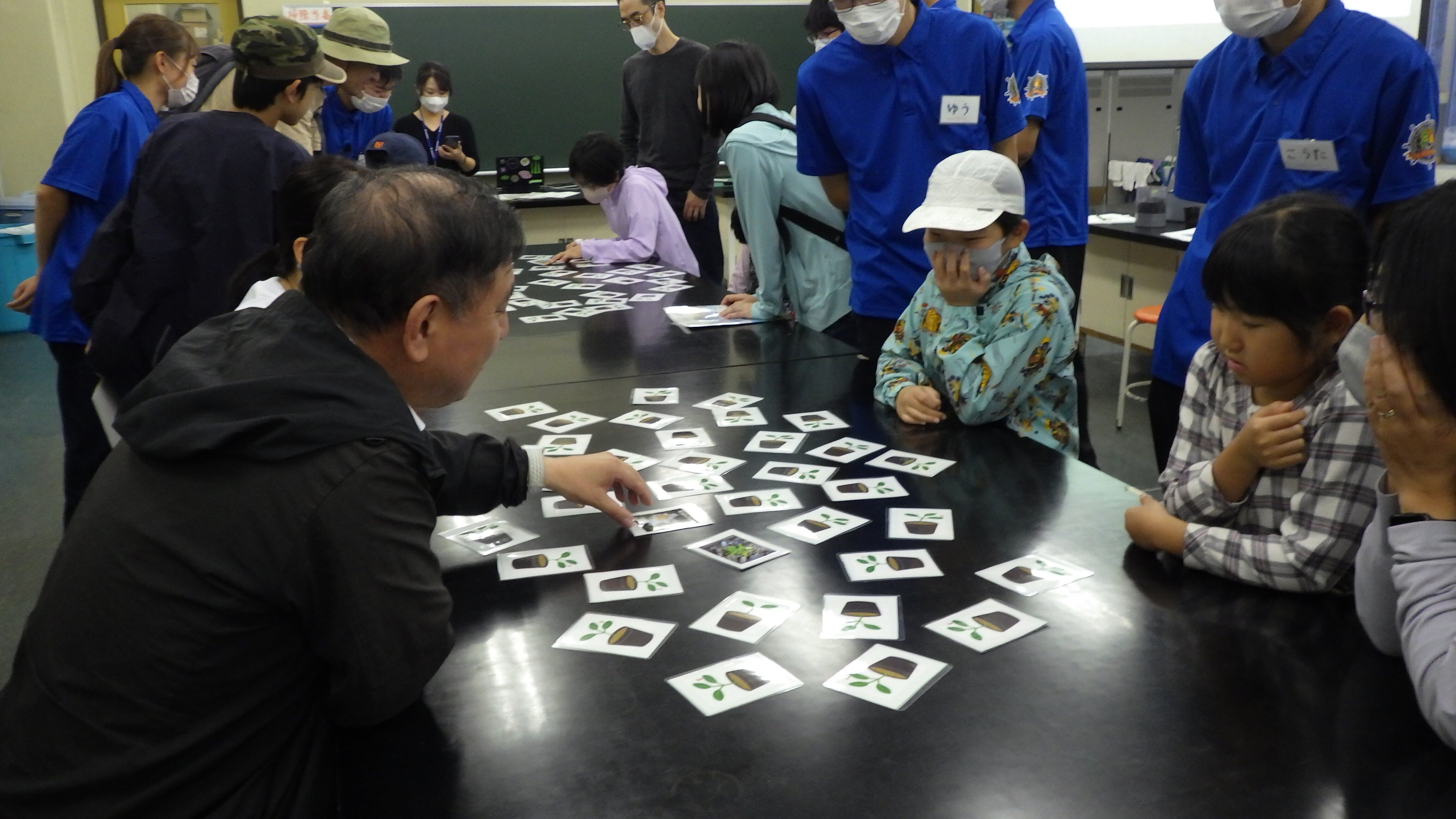 つぎに、海浜植物を覚えやすいように、学生さんお手製の「神経衰弱 海浜植物ver.」を行いました。子どもだけでなく、大人も夢中になっていました。