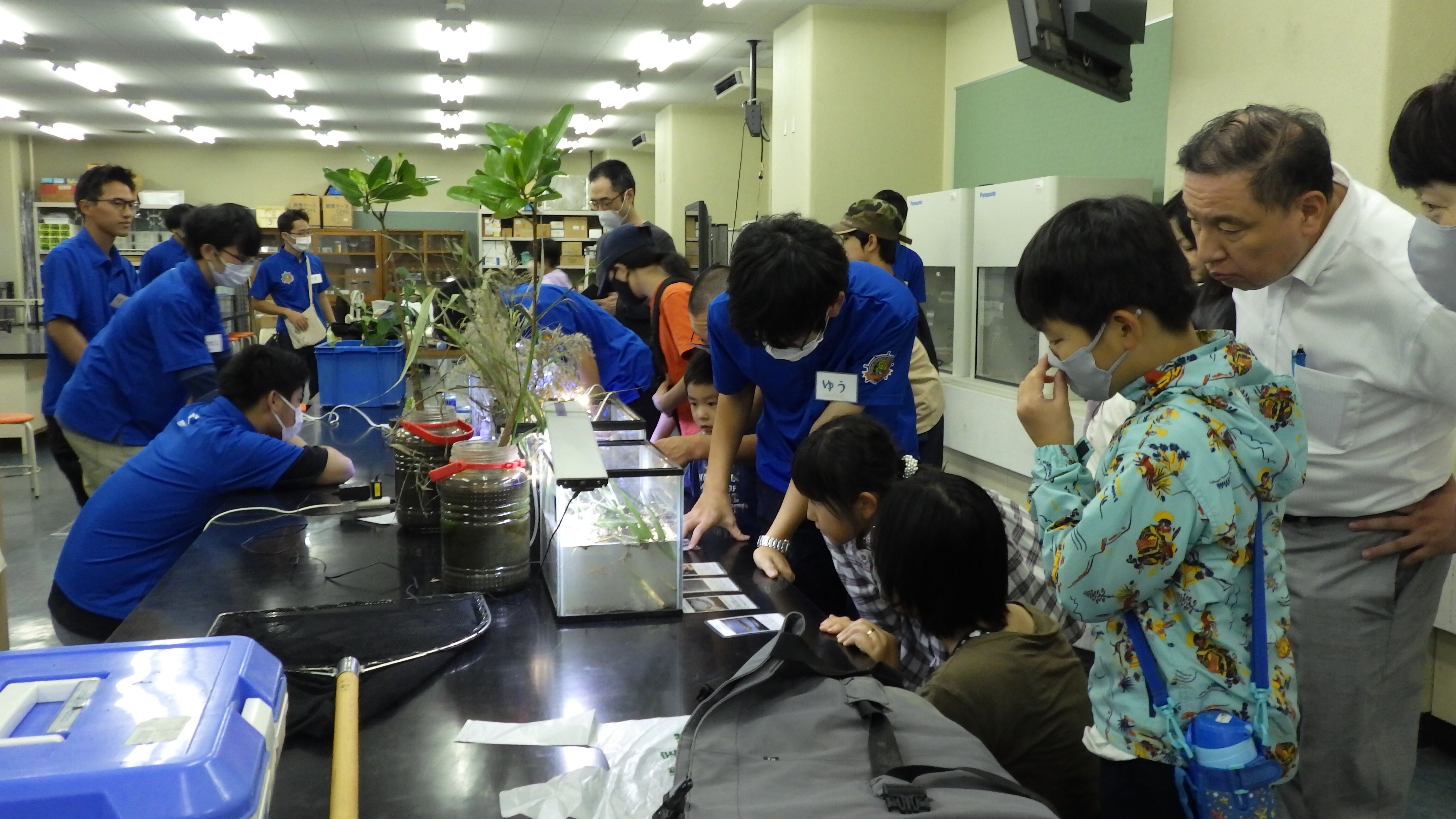 最後に、学生さんが観察会のために用意してくれた、塩生植物や海浜昆虫の水槽展示を観察しました。ハマダンゴムシやトビハゼに夢中になっていました。