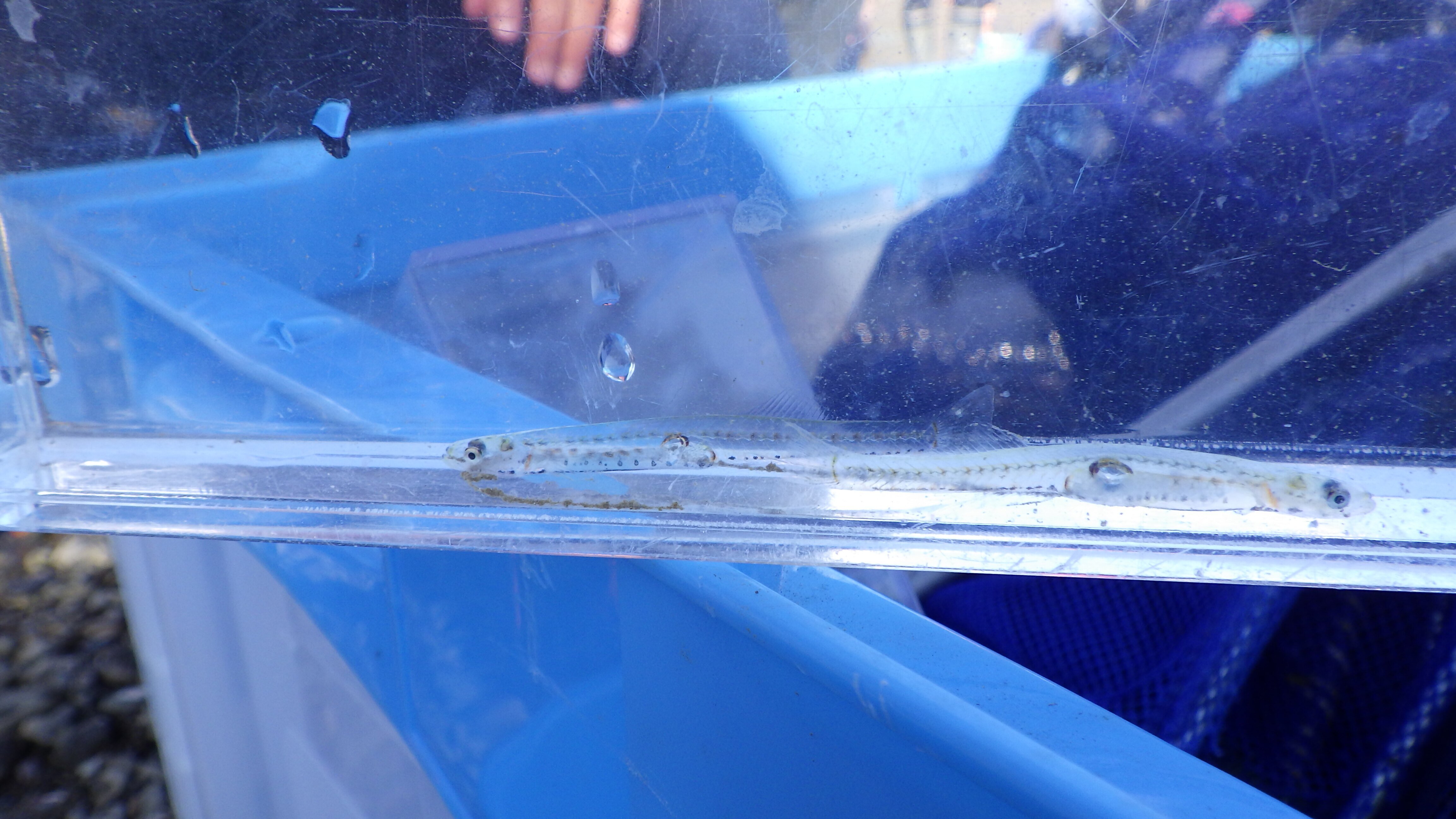 シロウオを3匹捕まえることができました。解説を受けながら順番に水槽を回して観察しました。