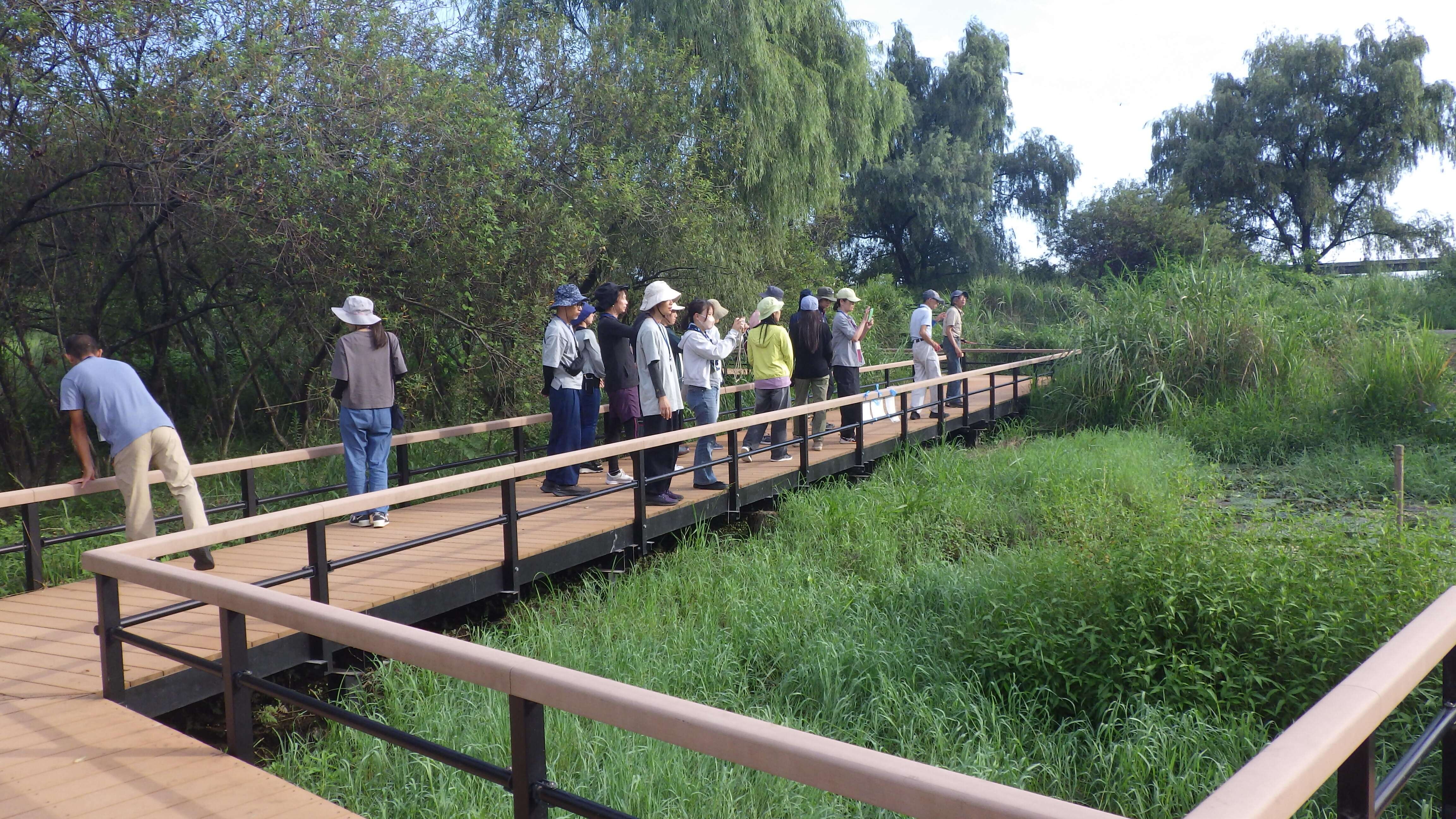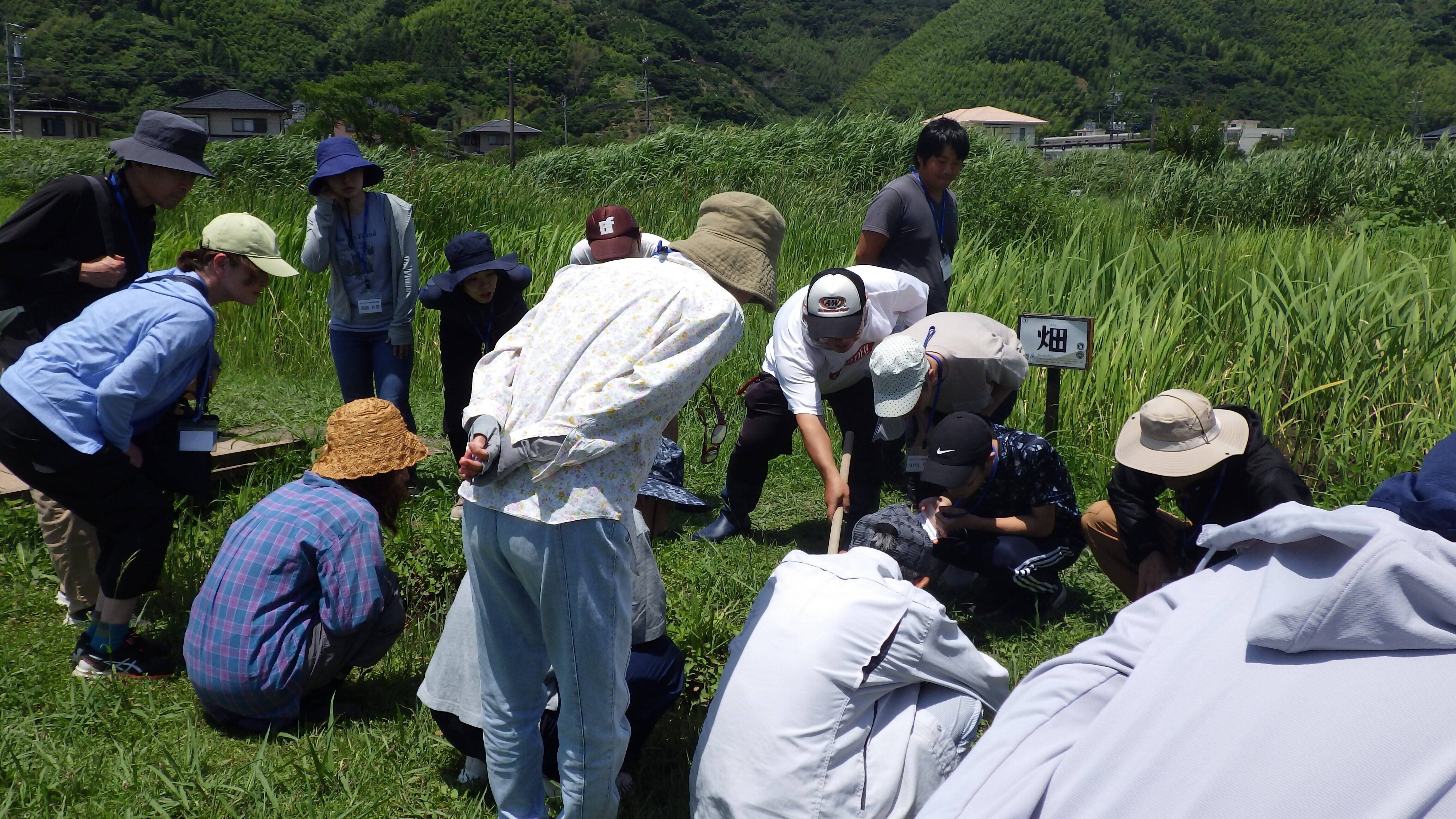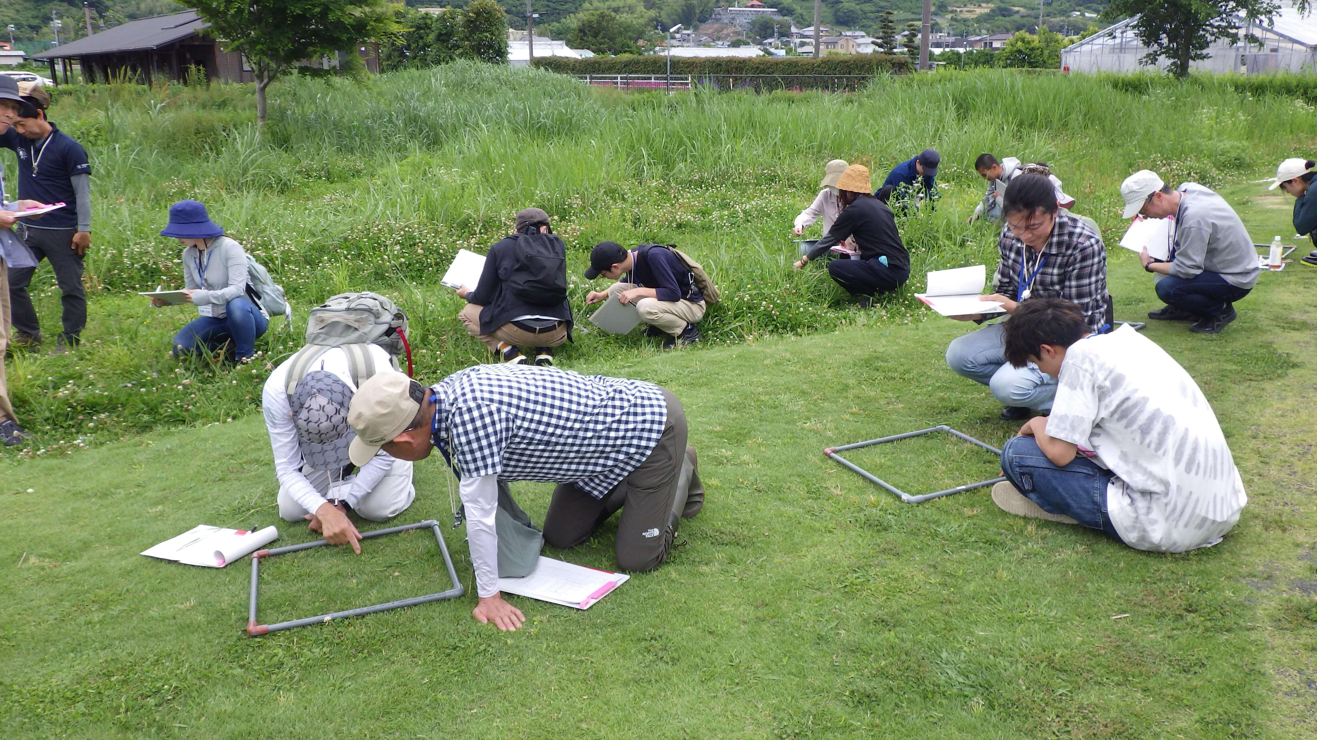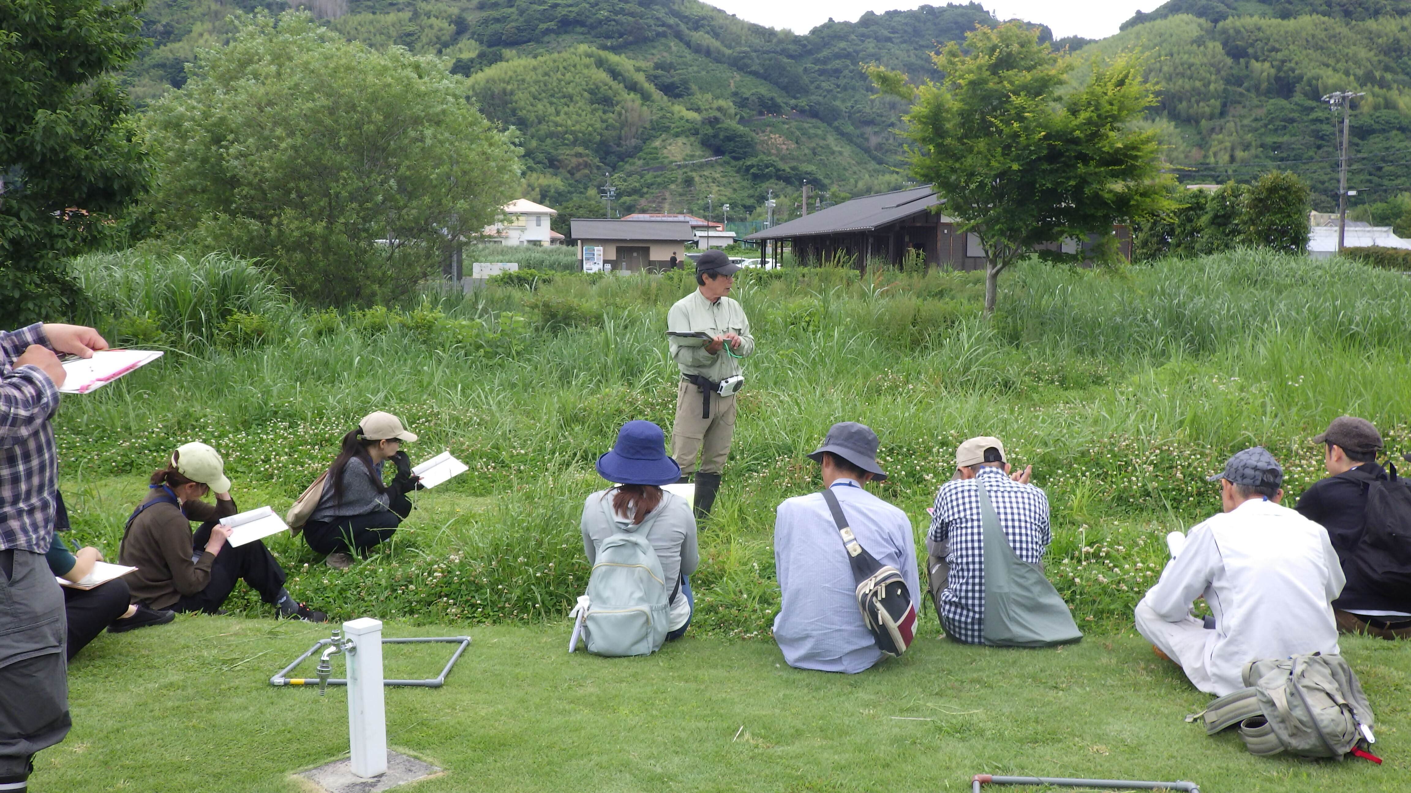 麻機遊水地で生きものの見分け方や調査について演習を行う