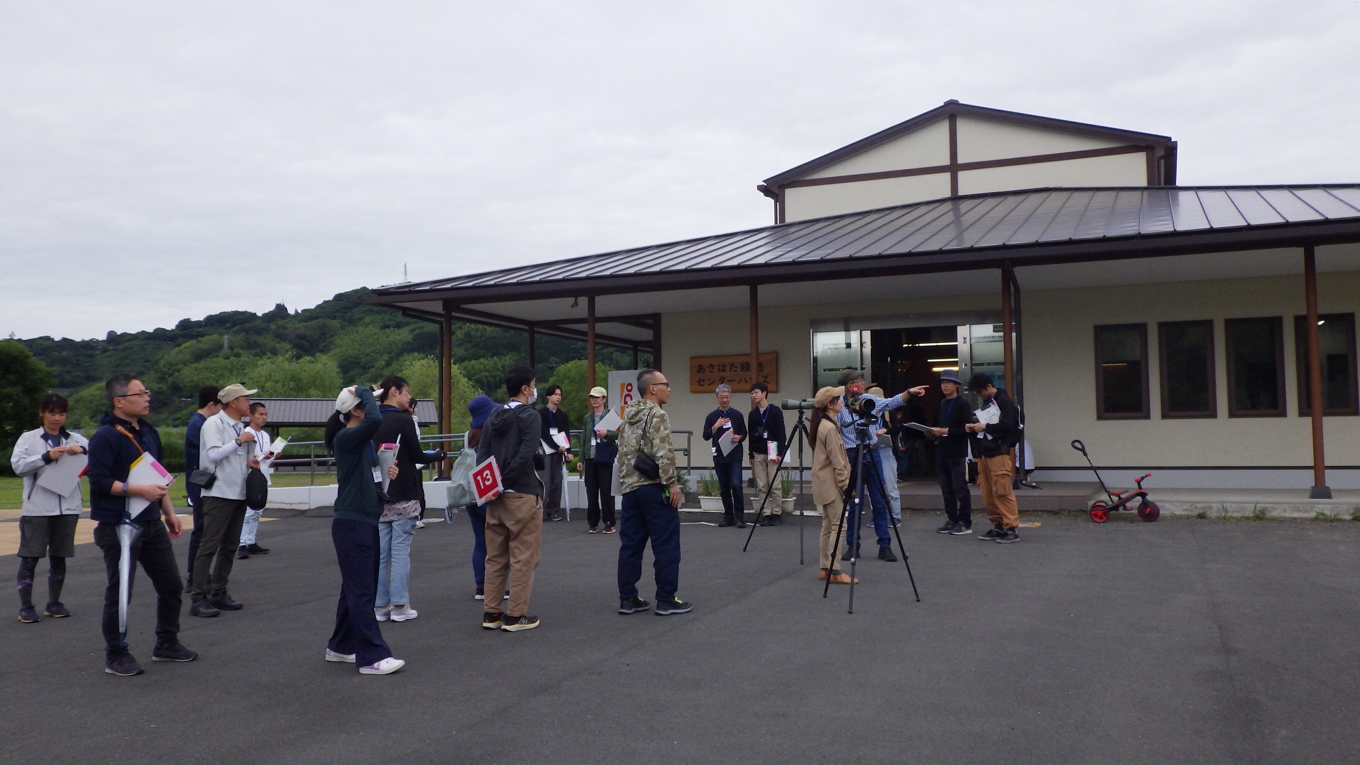 あさはた緑地周辺で、双眼鏡等で野鳥の観察法と見分け方を学びました。
