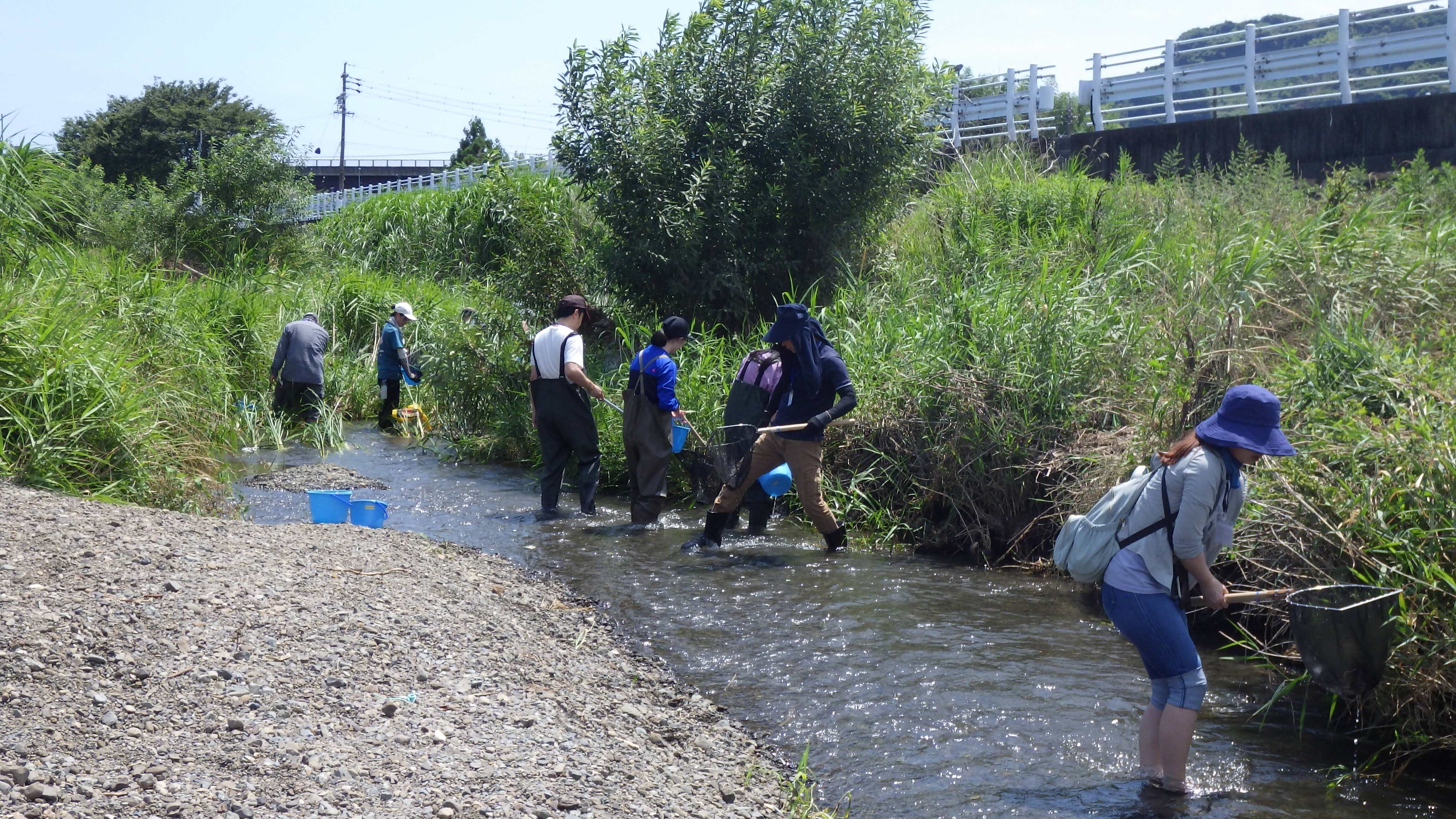 実際に、あさはた緑地の西を流れる巴川で、タモ網を使いガサガサしました。