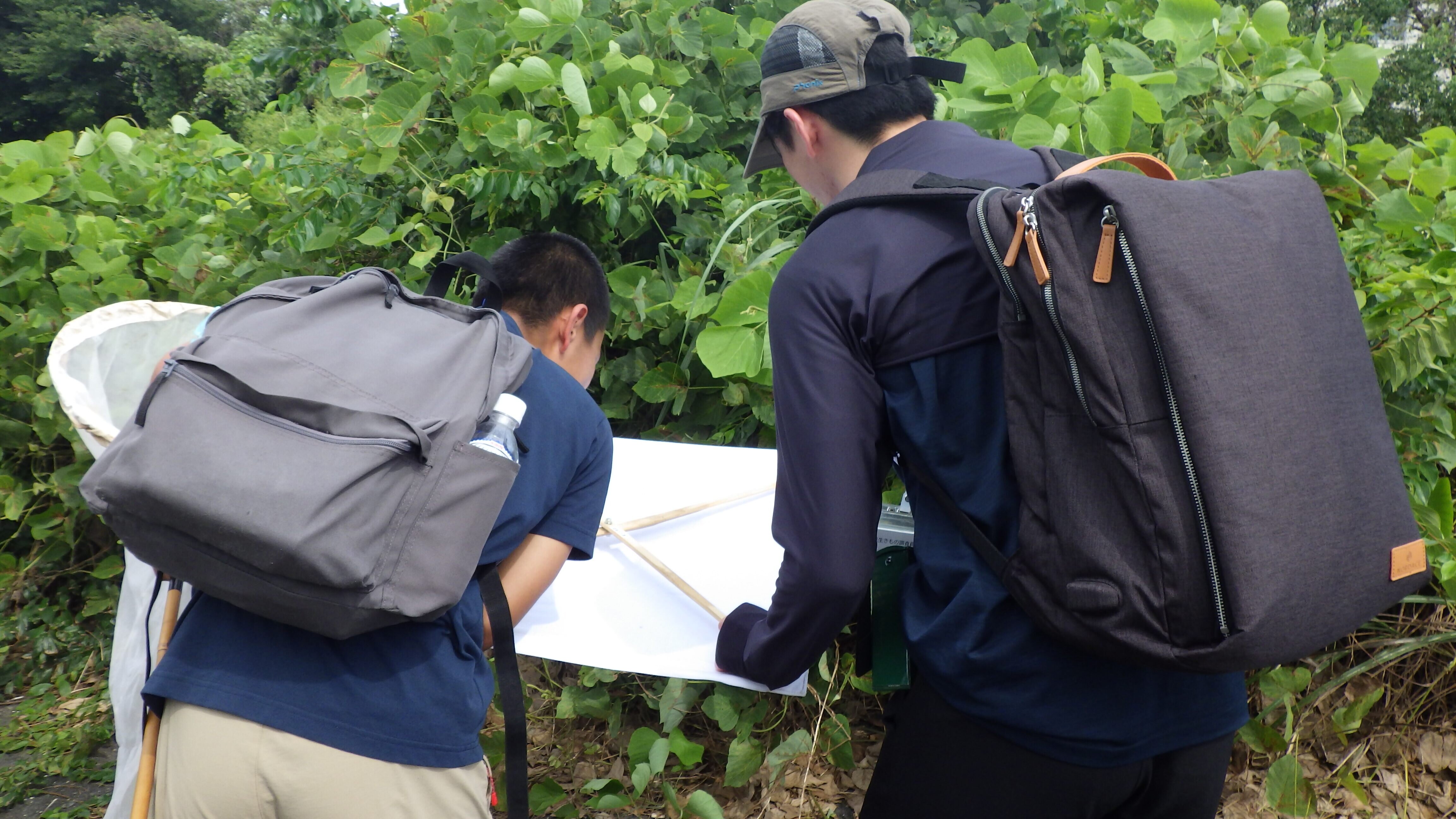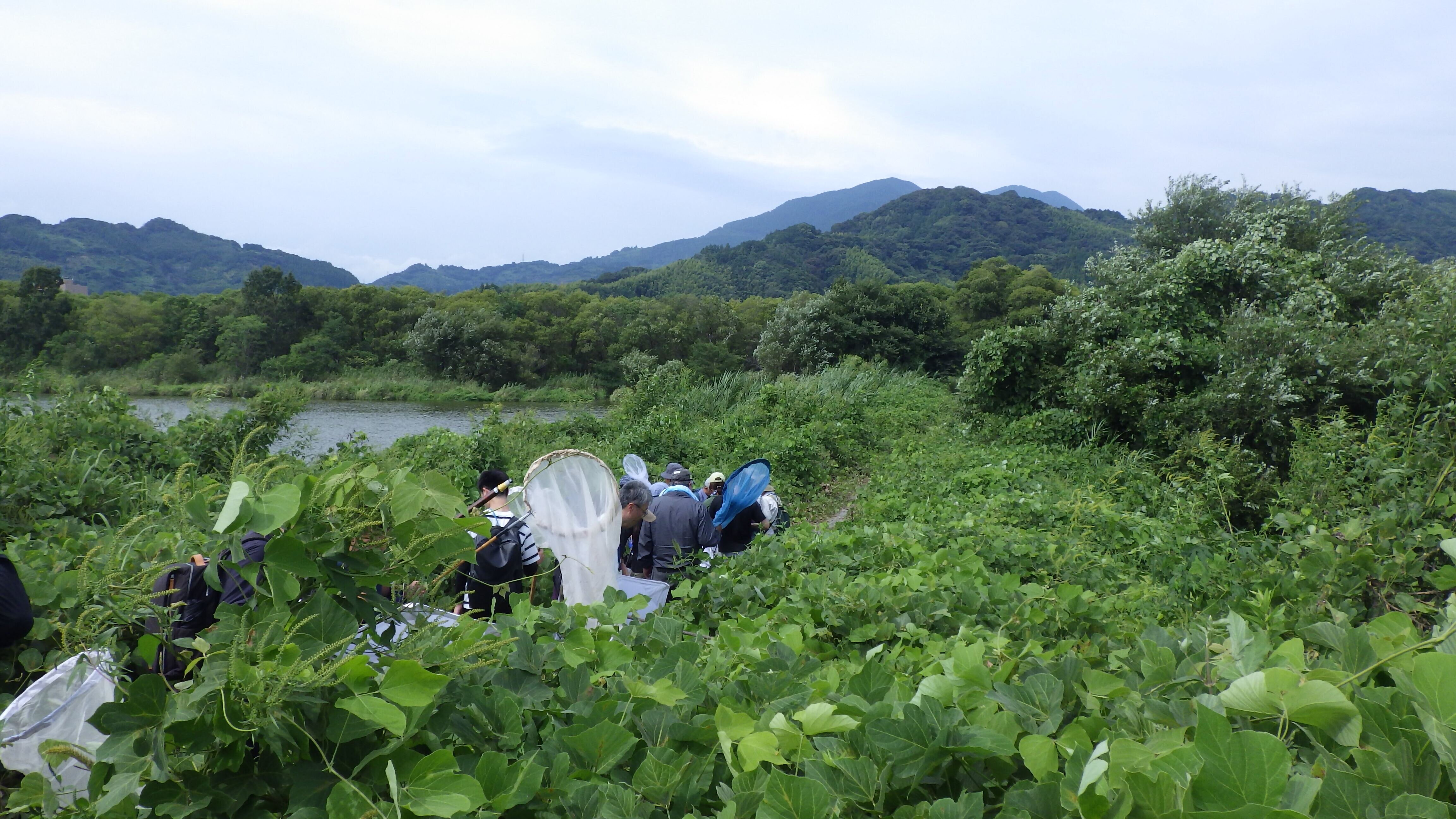 麻機遊水地第3工区に移動し、事前に講師が仕掛けたトラップの回収や、ビーティングネットや虫網を使った採集を行いました。