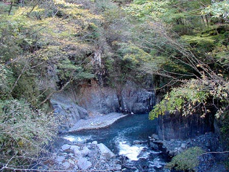 やや上流側の秋の写真です。非常に落差が大きく、階段状に川が流れていく様子がわかります。