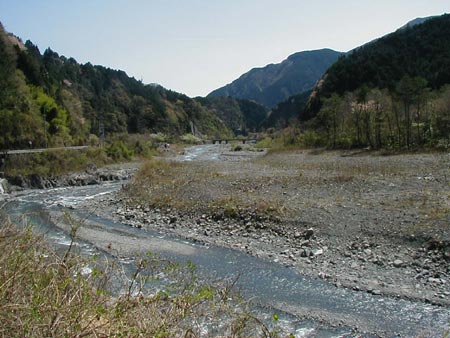 同じ地点の秋の風景です。左の山に紅葉が見られます。春と秋では随分山の顔が変わっていますね。