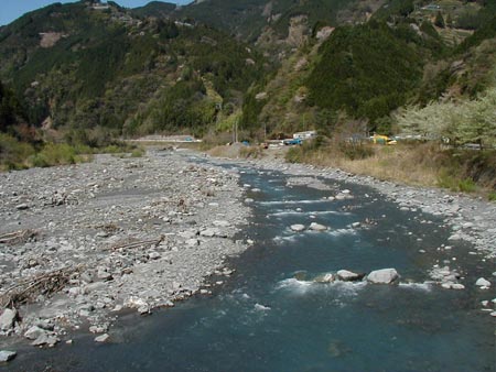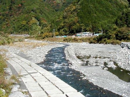 関の沢橋の上から撮影しました。川底にある石が見えます。水がきれいであることがわかります。