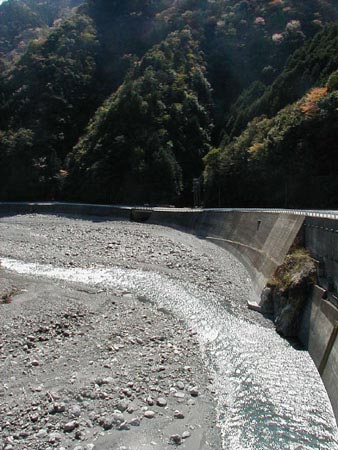 同じ地点の秋の風景です。左岸側(向かって右側)に土砂が堆積しているのがわかります。