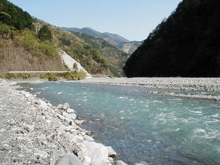 川の中央部は色が変わって見えます。流れがはやく、水深も深いようです。