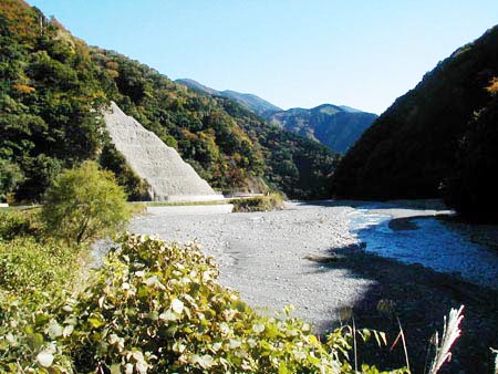 川の流れが春とは異なり、右岸側(右側)に集まっています。また、水の量が極端に少なくなっています。