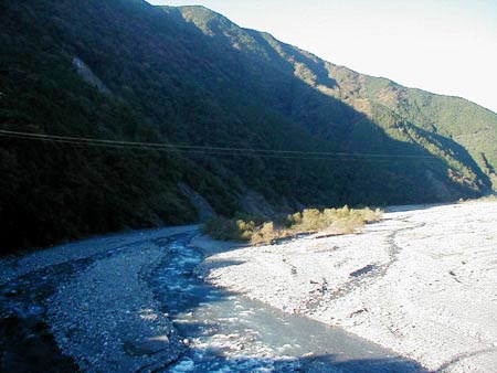 同じ地点の秋の風景です。春よりも川はやや左岸側を流れています。水の色はきれいですね。