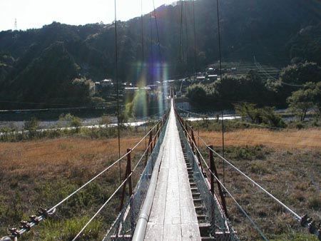 この橋の看板には「一度に十人以上渡れません」とありました。順番を守って渡りましょう。