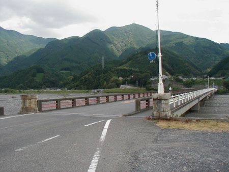 さわやかな秋空が広がるもとでの曙橋です。山の緑もとても美しいです。
