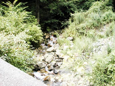 川の始まりはゴツゴツとがった石が多いです。斜面を降りる時、足を滑らせないように注意!