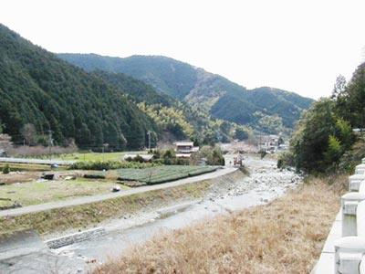 この辺にはサワガニがいるそうです。サワガニがいる川は水がきれいだそうです。茶畑もありのどかな風景です。