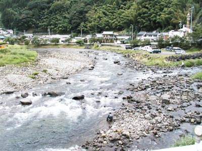 中河内川との合流点です。中河内川は山梨県との境の樽峠に発する樽川と湯沢川が合流して南流する大きな支流です。合流すると川も曲流するのがわかります。