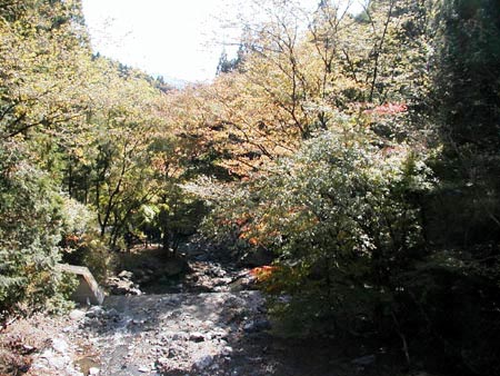 春と比べると若干、砂や礫が堆積しています。上流から合流する崩野川の影響でしょうか。なお、秋にはつつじはすっかり陰を潜めていました。
