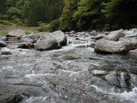 藁科川の上流は、大きな岩がごろごろしています。その中を落差の大きい流れを形成しながら流れています。まさに渓流です。安倍川とは全く違った雰囲気です。