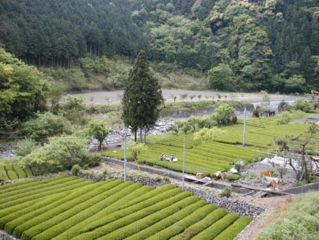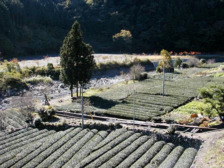 藁科川ぞいは茶の栽培に適した土地です。なお、下流の寺島という所には中国から茶の種子を持ち帰り栽培を始めた聖一国師の碑があり、静岡茶発祥の地とされています。