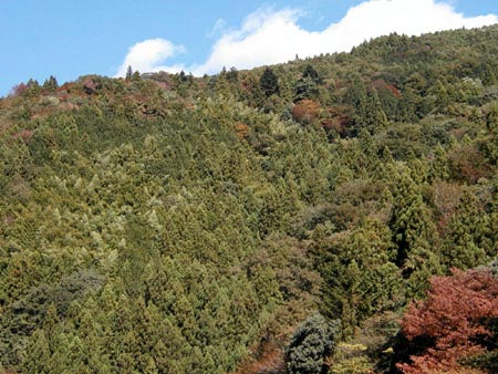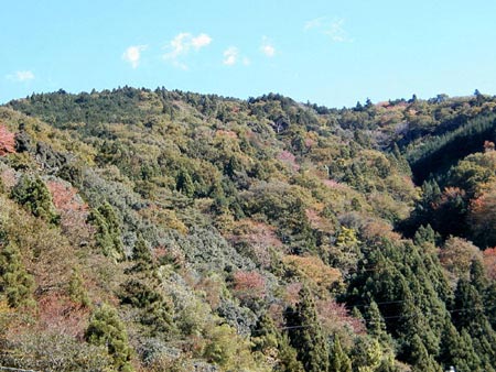 同じく秋の紅葉の様子です。写真手前の木々が見事に色付いています。