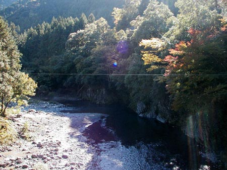 同じ地点の秋の風景です。両岸の樹木が色づいています。
