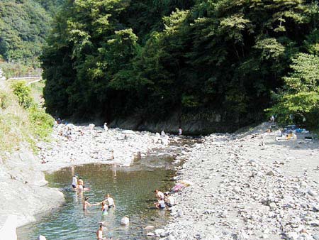 この淵は大きくて深いので、子供たちに混じって大人たちも泳いでいました。