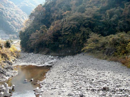 同じ地点の秋の風景です。水量が乏しくなり、大きな淵もしぼんでいます。