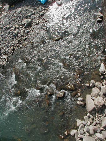 同じ地点の秋の風景です。上流の淵は、依然その大きさを保ってますが、礫の堆積も目立っており、若干浅くなっているようです。
