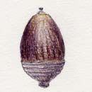 ![]() 卵型。殻斗はお椀形でリング模様。 春、開花、受粉し、秋に実る |