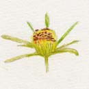 ![]() 頭花は舌状花は小さく、外からは見えない。総苞片が長い |