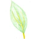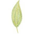 ![]() 深緑色。裏は粉白色。ニッケイよりやや葉幅が広く、葉先は短くとがる。3脈が基部よりやや上で分岐する |