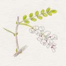 枝にはトゲがあるから気をつけよう、ハリエンジュっていう名前がつく位だからね。どうしてきれいなものには、トゲがあるんだろう? この美しい花はみつばちも大好き、おいしい蜜がいっぱい。 花ことばは「密かな恋・友情・優美」 |