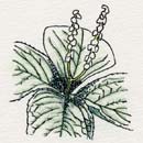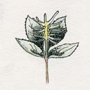 葉に包まれるようにしてその中から顔を出した花にびっくり。今はまだつぼみだけど、そのうちイガイガ頭に変身。このイガイガに見える所は白い花糸といわれる所。確かに「一人静か」には間違いないけど…花にもいろんな形があるんだね。 花ことばは「隠された美」 |