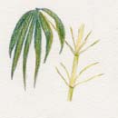 マダケの男竹に対して、女竹(メダケ)といいます。高さがマダケは10m以上になりますが、メダケは2~5mほどです。タケやササは、茎のことを稈(かん)といって、そこに皮がいつまでも残っているものをササ、すぐに落ちるものをタケと呼びます。おもしろい見わけの方法でしょ? |