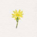 ![]() 頭花は大きく(径2cm)、数も多い。淡黄~白色。多数の舌状花からなる |
